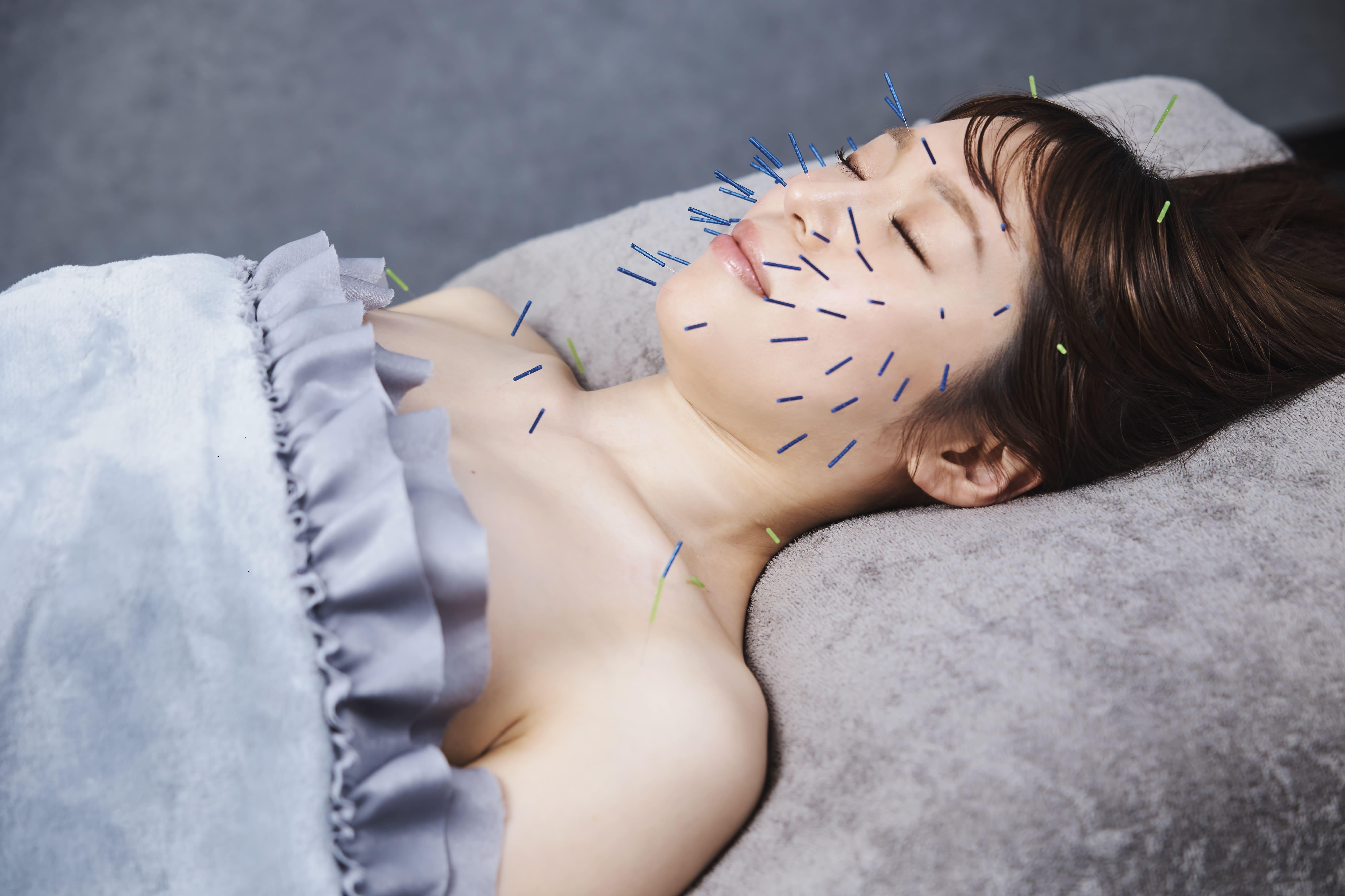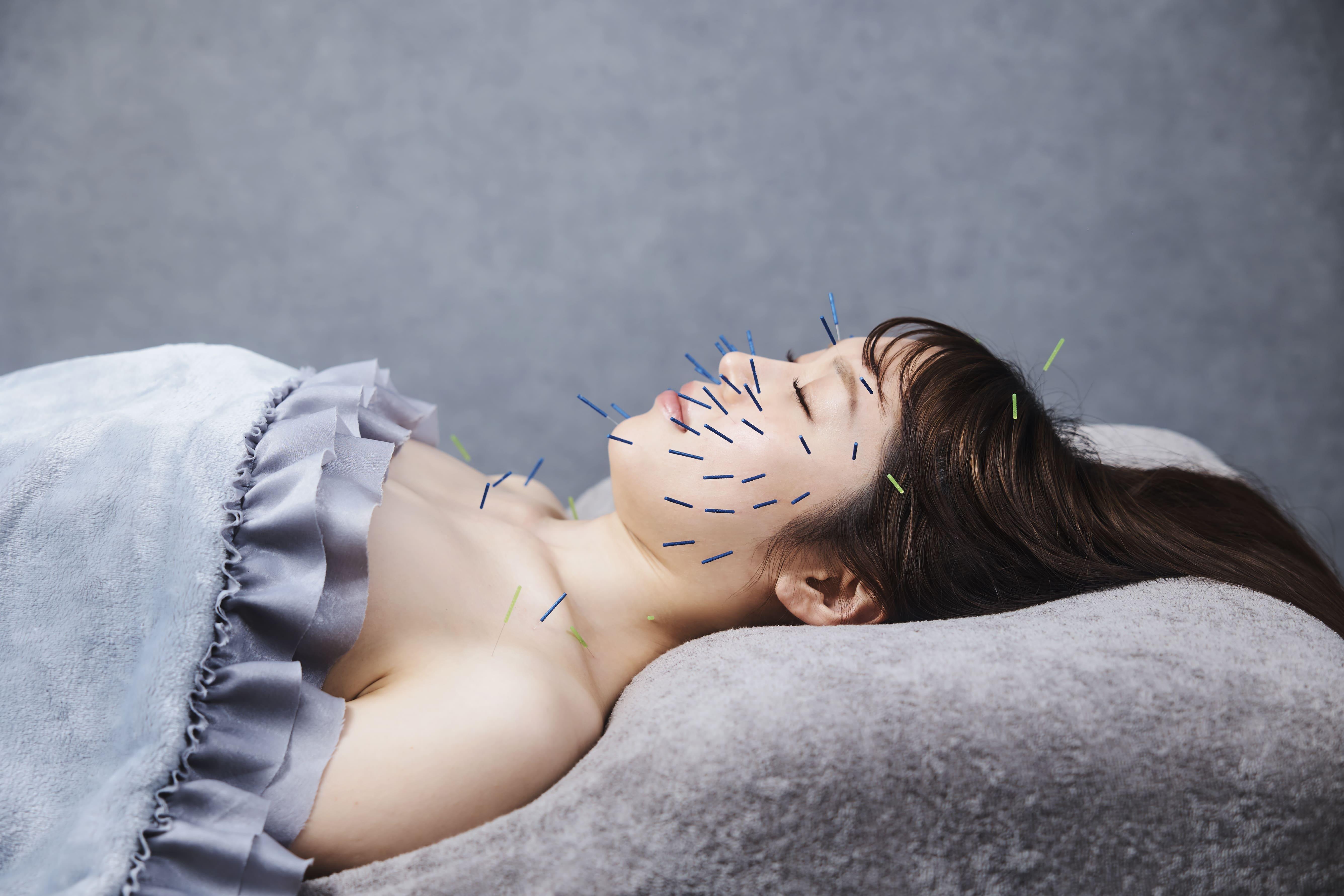 《美容鍼》頭皮鍼・パルス電流+ダーマ美容鍼《鍼灸》仰向けでの全身鍼灸《オイルハンド》フェイシャルトリートメント+炭酸パック+頭蓋骨ヘッド